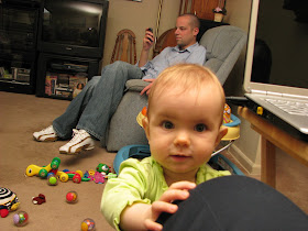 Julieanna plays with Cora on the floor. But Cora plays with Mom all the time. Kyle is someone new!